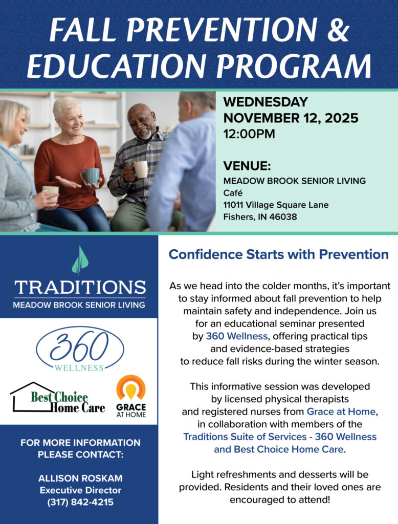 As we head into the colder months, it’s important to stay informed about fall prevention to help maintain safety and independence. Join us for an educational seminar presented by 360 Wellness, offering practical tips and evidence-based strategies to reduce fall risks during the winter season.